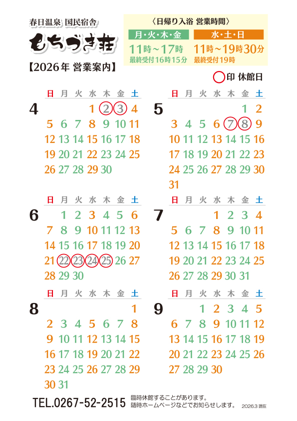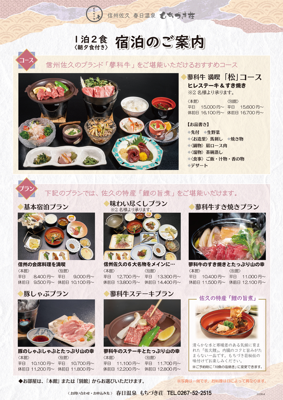 2026年4月からのもちづき荘宿泊パンフレットができました。