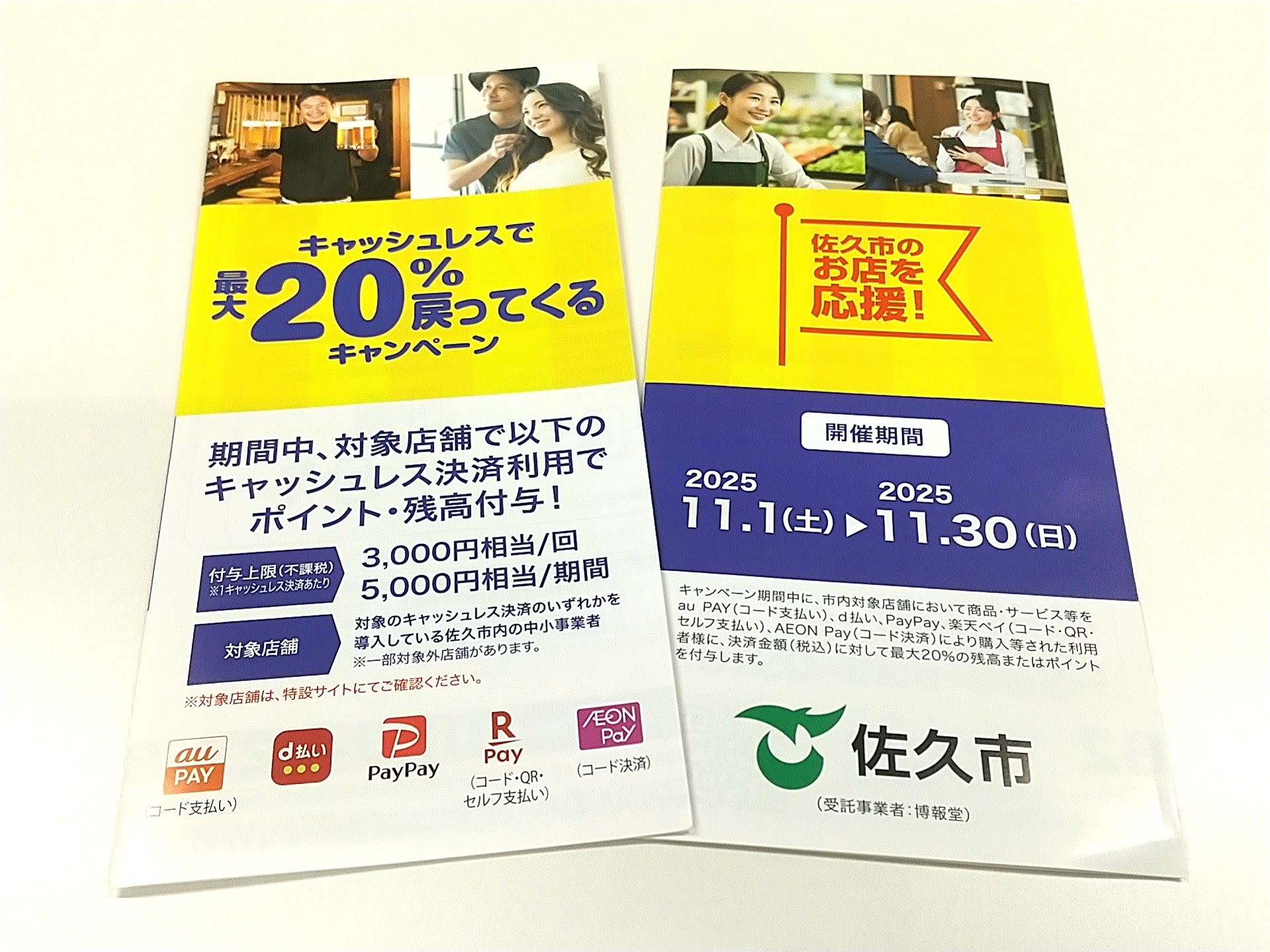 佐久市のお店を応援!「キャッシュレスで最大20%戻ってくるキャンペーン」が、2025年11月1日から始まります。