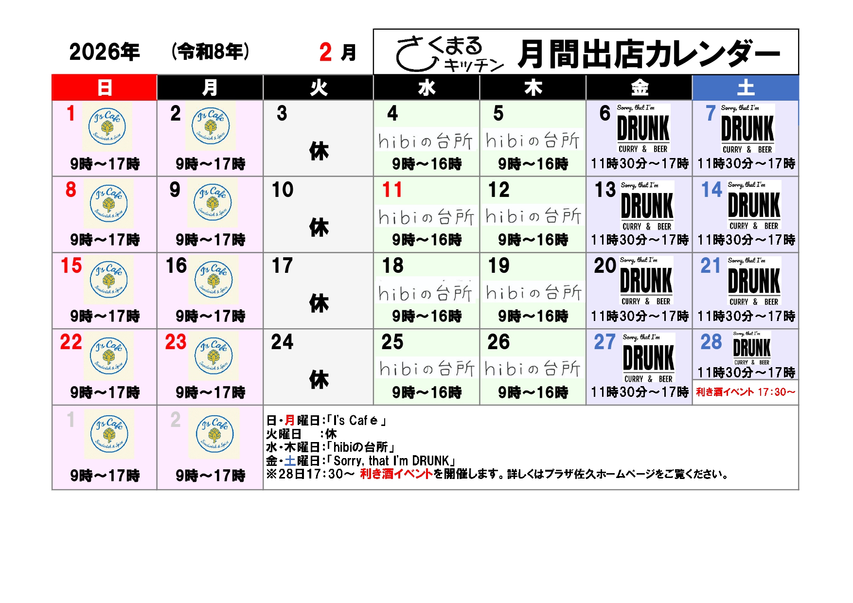 ・2月28日(土)はSorry, that I’m DRUNKさんの営業終了後に、